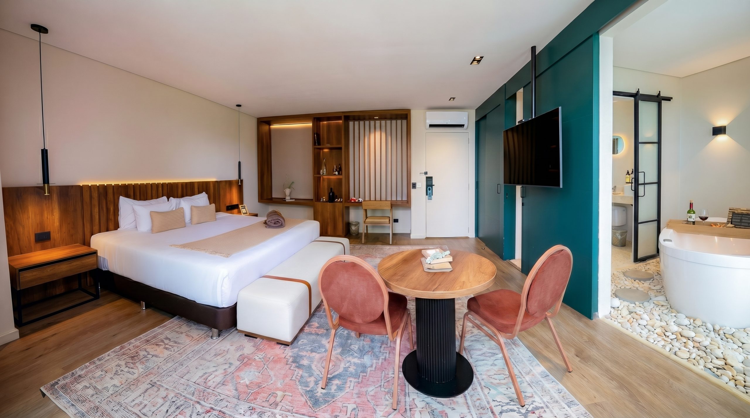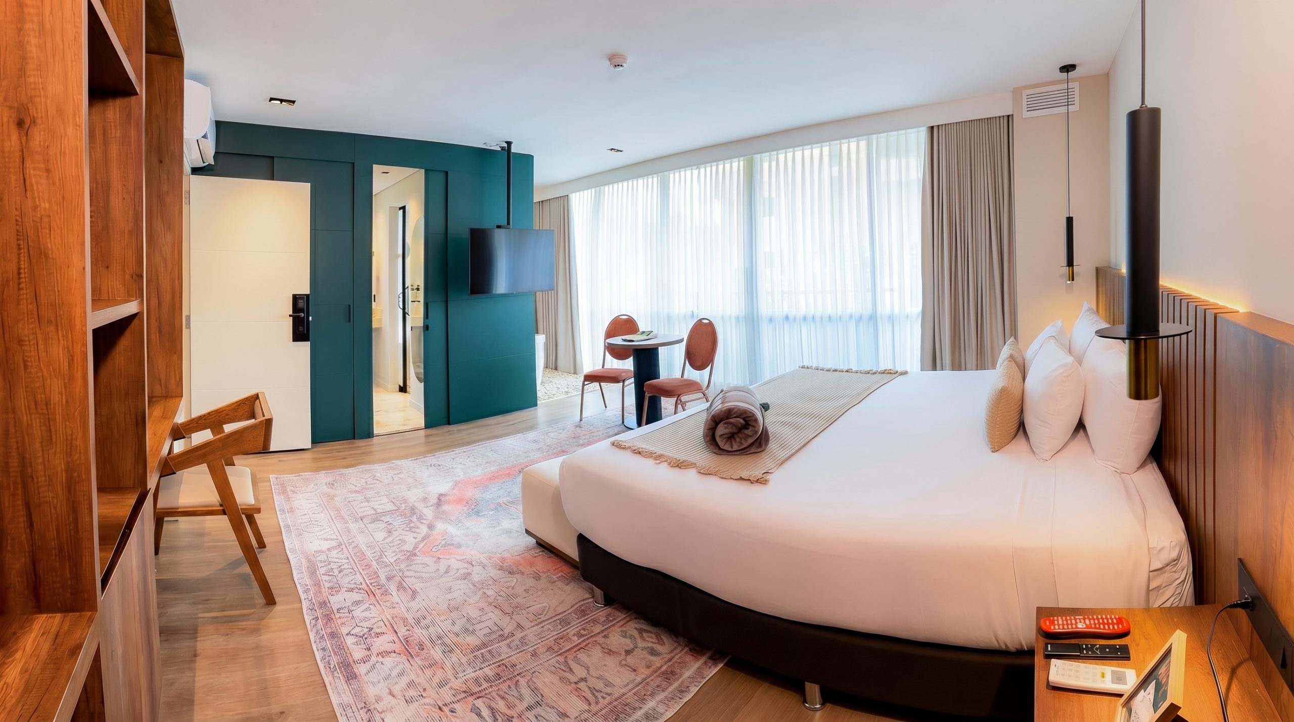 Nos alejamos del estándar convencional para ofrecerle habitaciones extraordinariamente amplias, con techos altos y ventanales que inundan de luz su estancia.