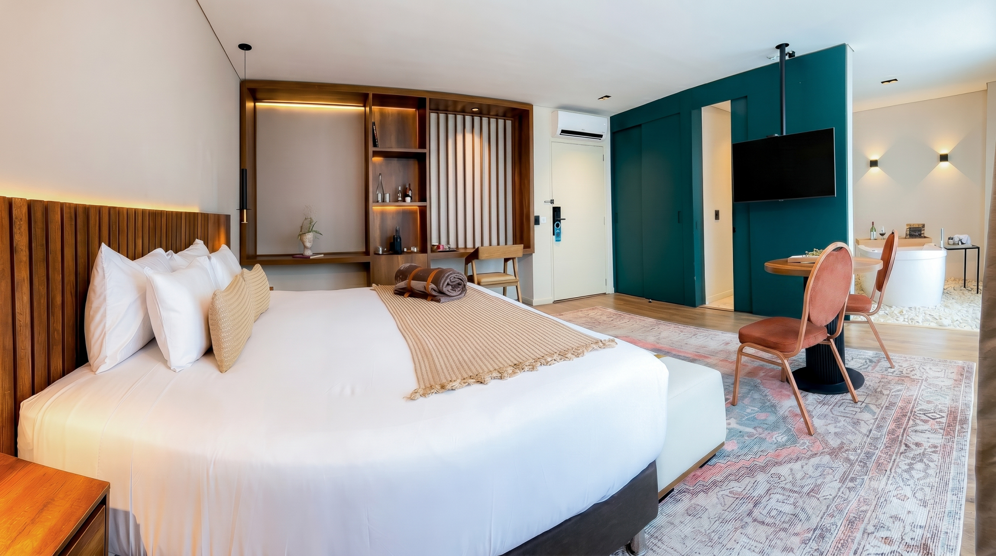 Nuestra habitación insignia, Superior con bañera es la definición de confort inteligente. Diseñada para el viajero contemporáneo que no sacrifica el estilo por la funcionalidad, ofrece un espacio de calma absoluta en medio de la energía vibrante de Medellín. Disfruta de una estética industrial-chic con acabados de alta gama y una atmósfera de privacidad total, ideal tanto para una noche de descanso reparador como para un día de productividad enfocada.
